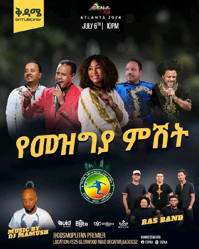 – አመታዊ የስፖርት ባህል ዝግጅት በማስመልከት አጠቃላይ የመዝግያ ምሽት ከ ባህር ማዶ አትላንታ ቅዳሜ በ29/2016 ደማቅ ኮንሰርት ይከናወናል፡፡ ታላላቅ ድምፃዊያን ሲሳተፉበት ድምፃዊት አስቴር አወቀ ፣ ፀጋዬ ስሜ ፣ጌትሽ ማሞ ፣ አረጋኸኝ ወራሽ እና የመሳሰሉት ከራስ ባንድ እና ከዲጄ ማሙሽ ጋር ሆነው በዝግጅቱ ይቀርባሉ፡፡