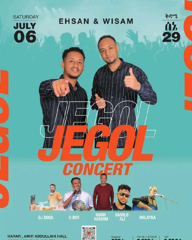 – አዲስ አበባ ሀረር ከተማ ደማቅ የሙዚቃ ድግስ ተዘጋጅቷል #ጀጎል #ኮንሰርት ኮንሰርቱ የሚከናወነው ቅዳሜ በ29/2016 አመተ ምህረት ሲሆን በሀረር አሚር አብላሂ አዳራሽ ውስጥ ሲሆን የሙዚቃ ስራቸውን የሚያቀርቡት ሂሳን ፣ ዊስማ ፣ሲ-ቦይ ፣ ካሚሎ አሊ እና የመሳሰሉ አንጋፋ ሰዎች የሙዚቃ ስራዎቻቸውን ያቀርባሉ